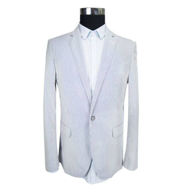 Blue Pinstripe Mens White Blazer Jacket Worsted Fabrics All Cotton Material